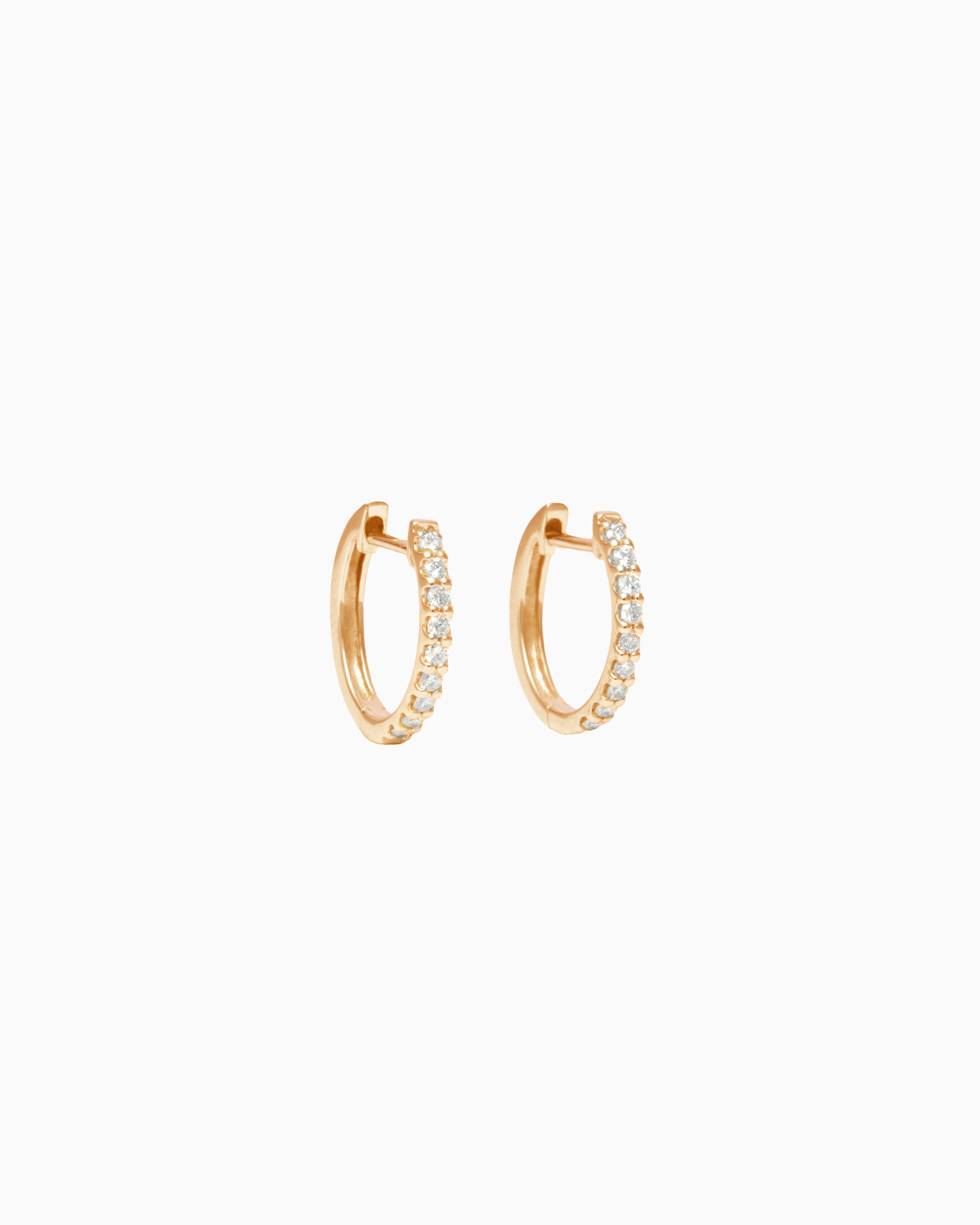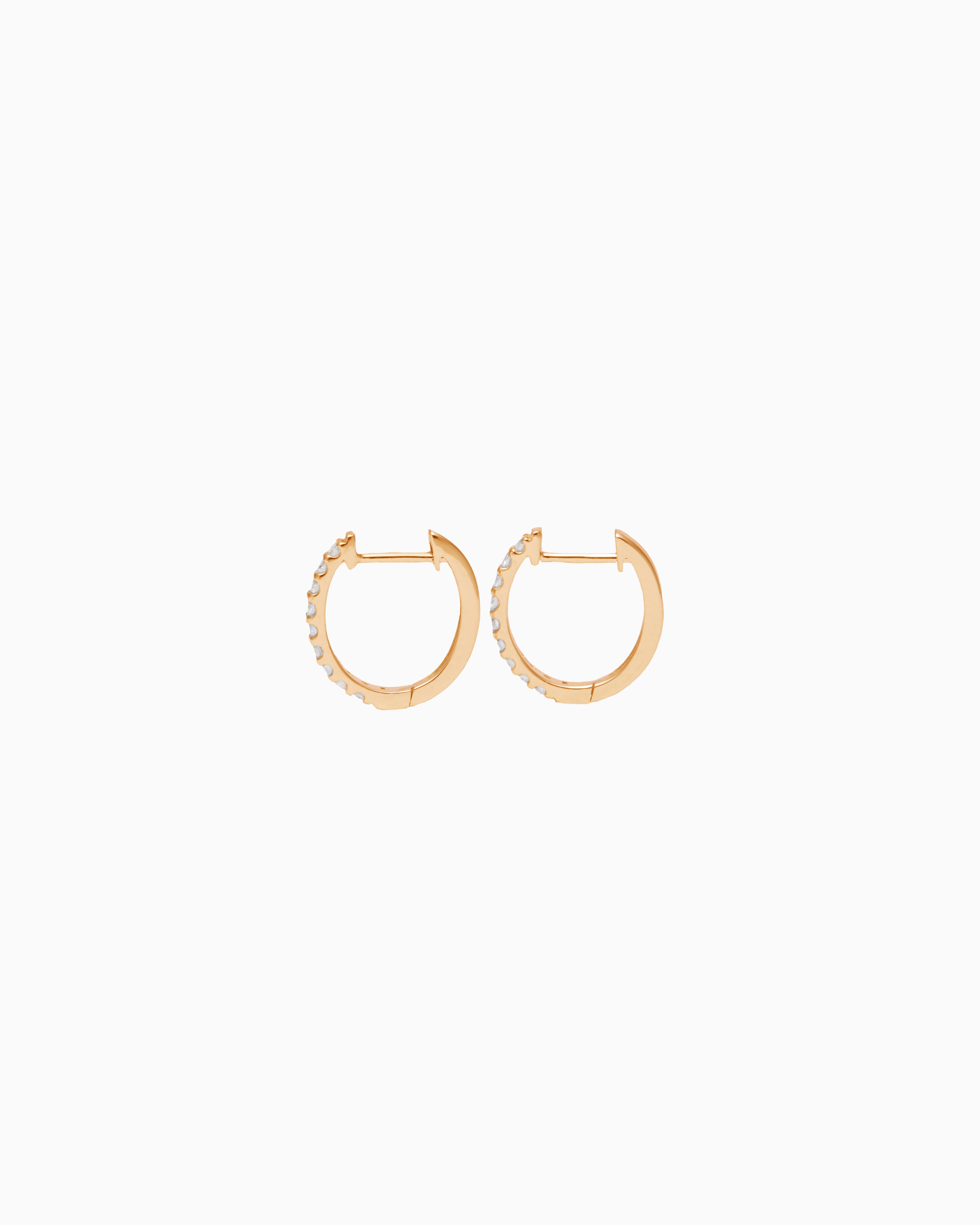 Éline is a minimal pair of small hoop earrings set with a total of 0.18 carat diamonds. Refined, understated and easy to wear. A soft everyday sparkle.