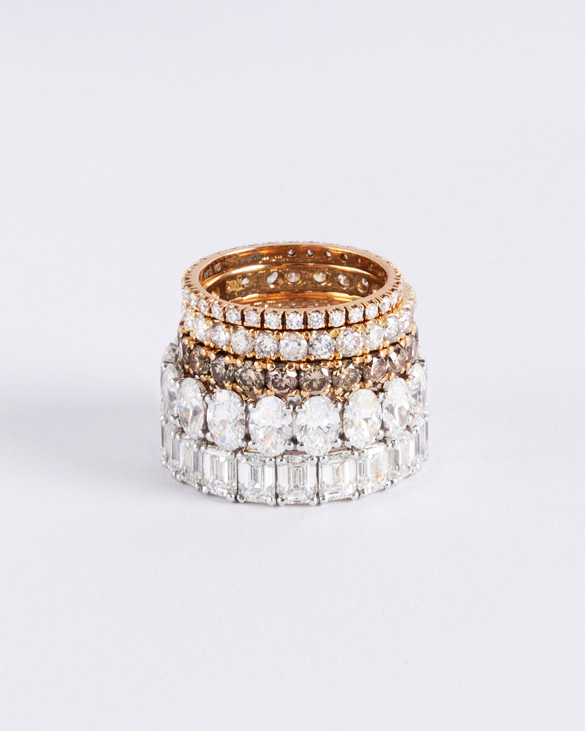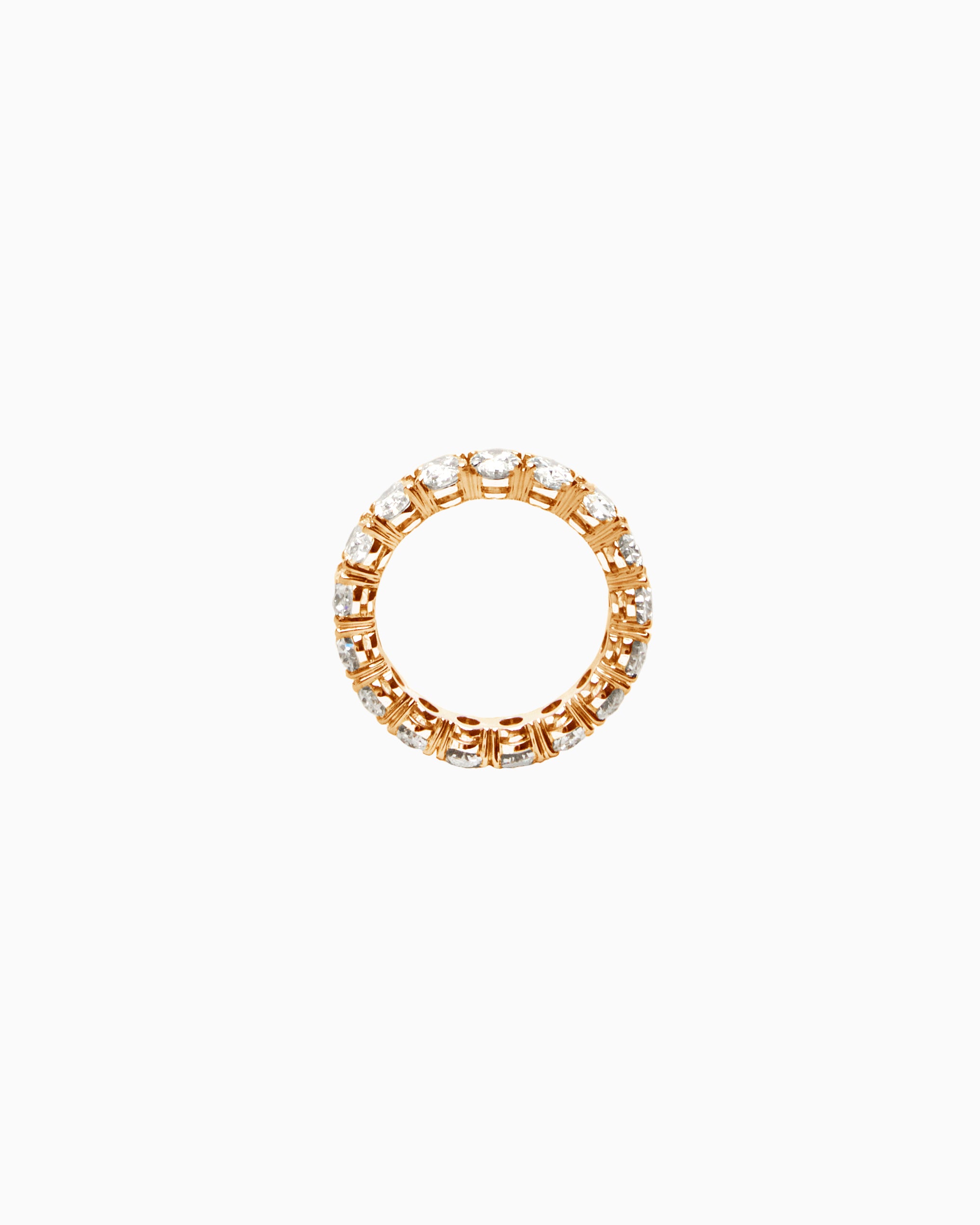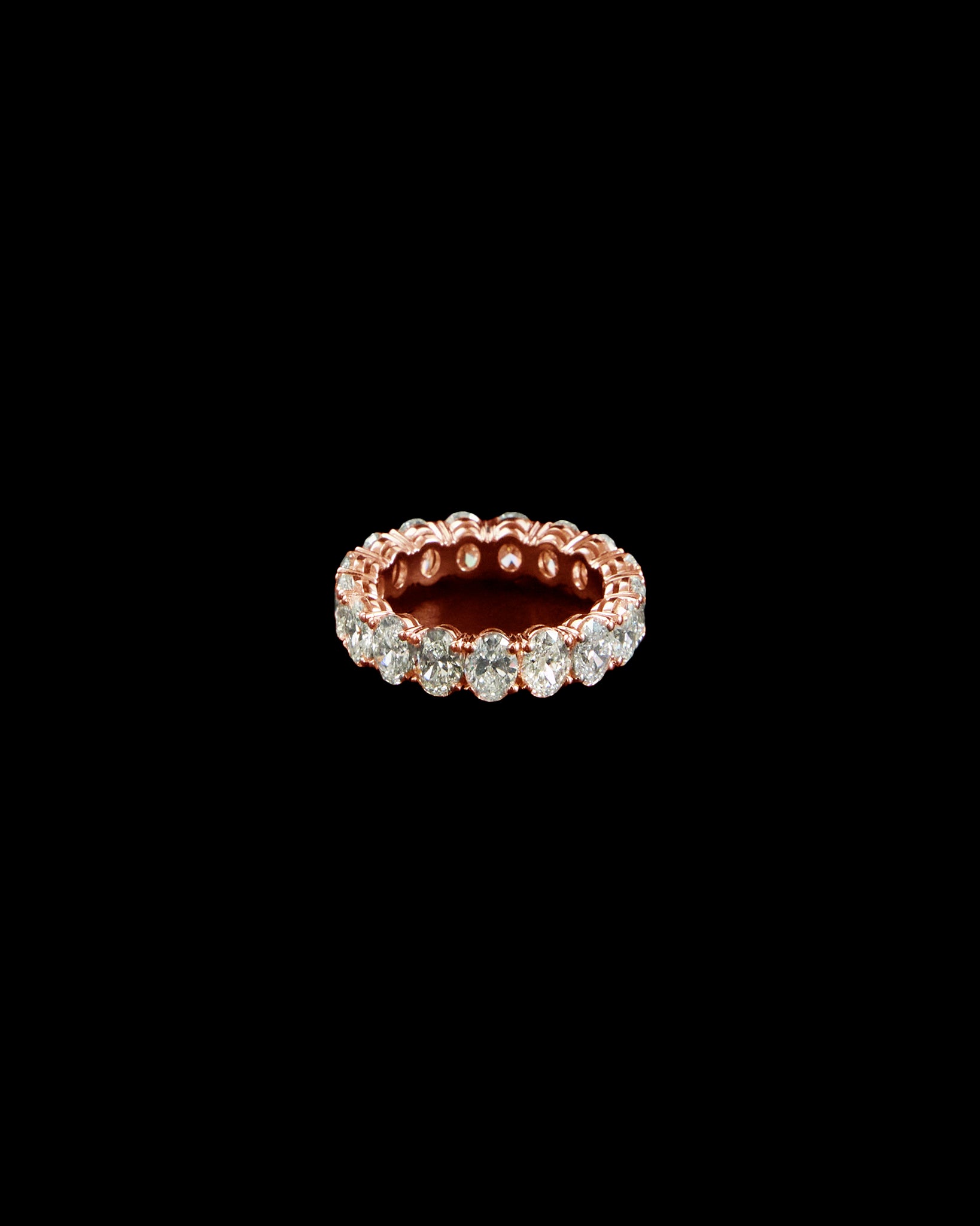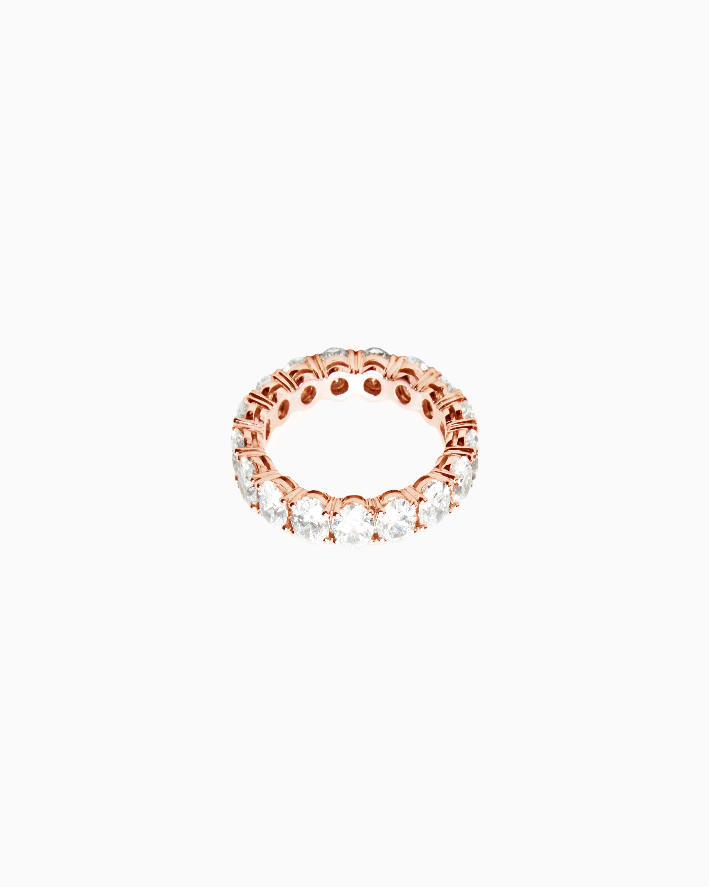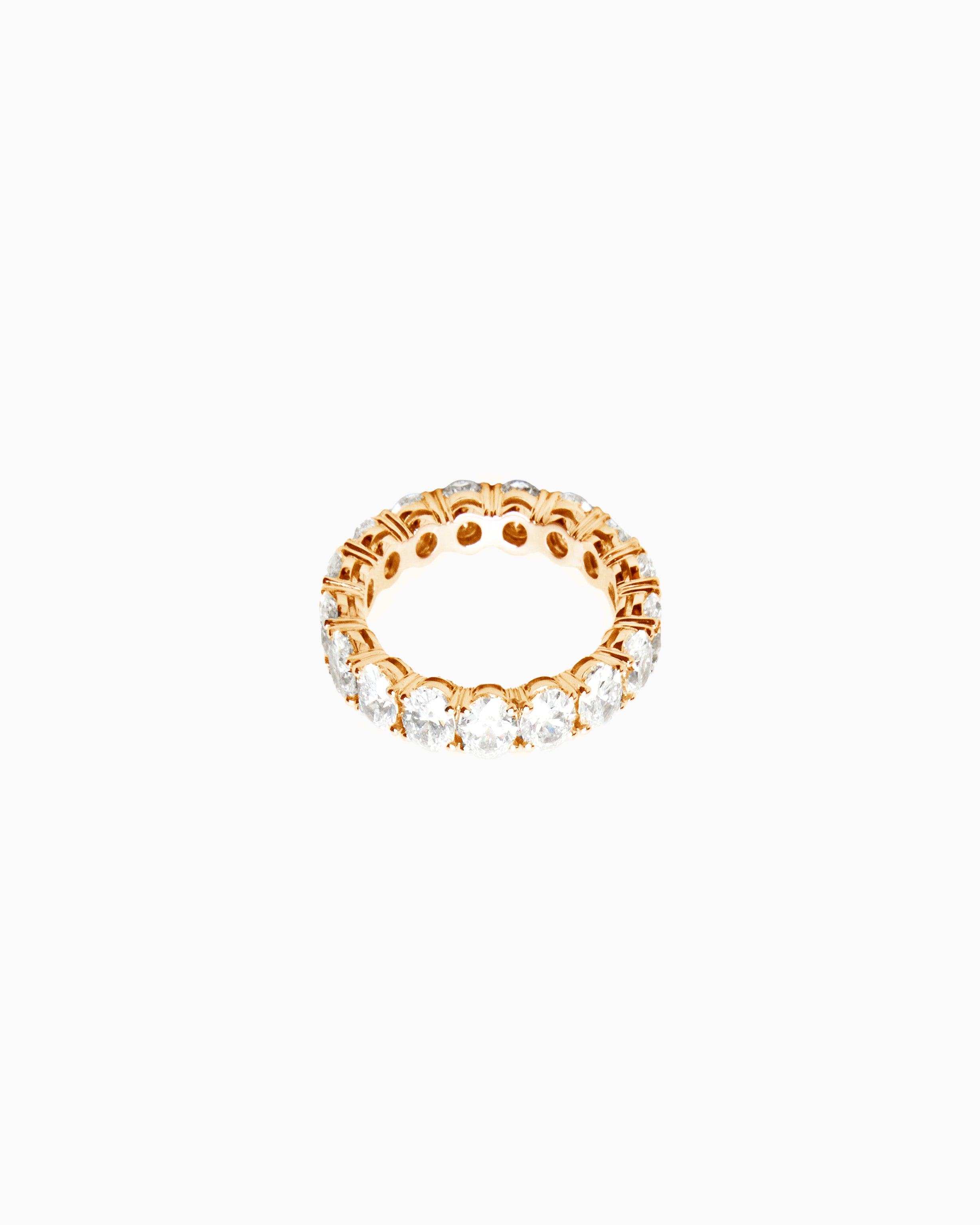Lumora is the embodiment of eternal brilliance. This full-circle eternity ring features a flawless line of oval-cut diamonds. Each stone is unique with an estimated 0.3 carat each. GIA/IGI certificates are provided.