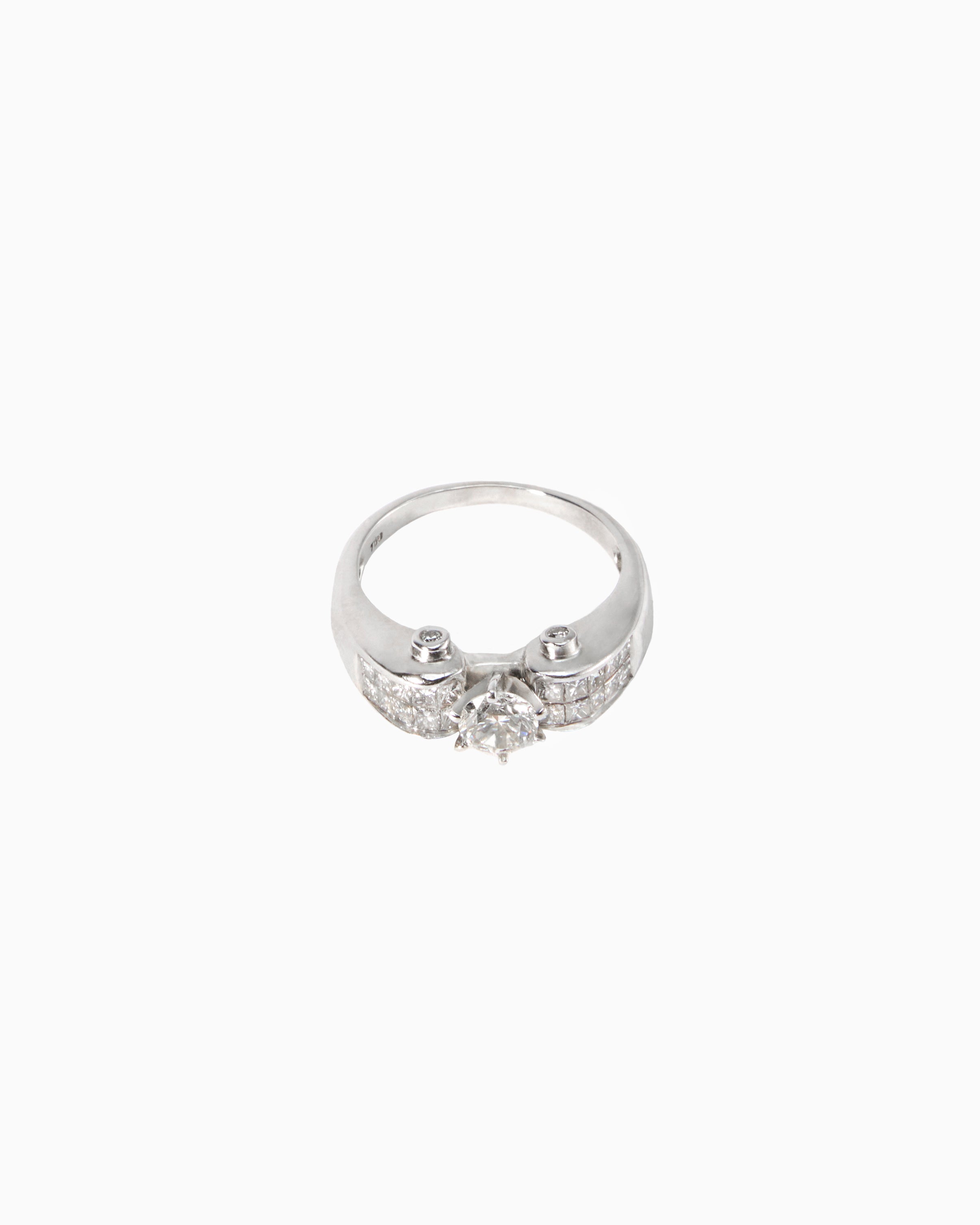 The Ardent is not just a ring—it’s a declaration. Crafted in 18K white gold, this sculptural piece showcases a commanding 0.5 ct brilliant-cut diamond at its center. Flanked by 20 princess-cut diamonds totaling 0.6 ct, and accented with 4 delicate 0.01 ct round diamonds.